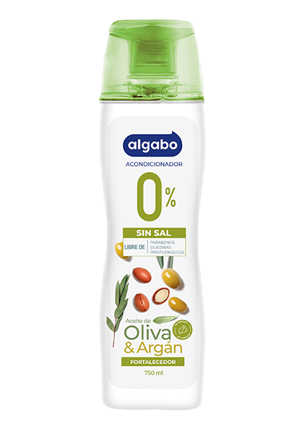 Acondicionador 0% Sal Oliva y Argán 750ml El Acondicionador 0% Sal Algabo neutraliza las cargas del cabello y suavidad facilitando el peinado. Esta crema d…